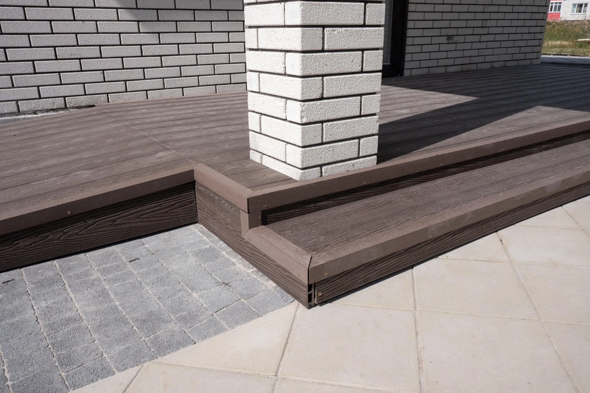 Пешеходные дорожки и отмостка выполнена тротуарной плиткой с применением бордюров.