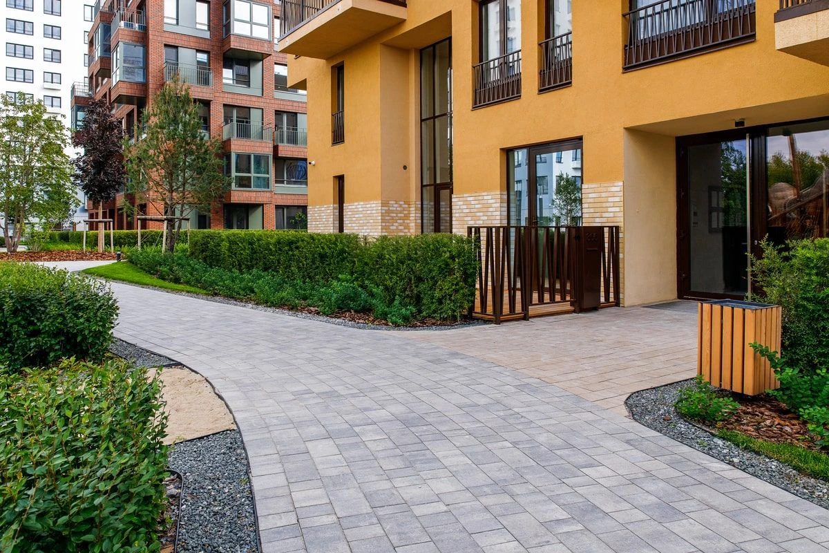 Благоустройство в Жилом комплексе "Европейский квартал" выполнено с помощью плитки: